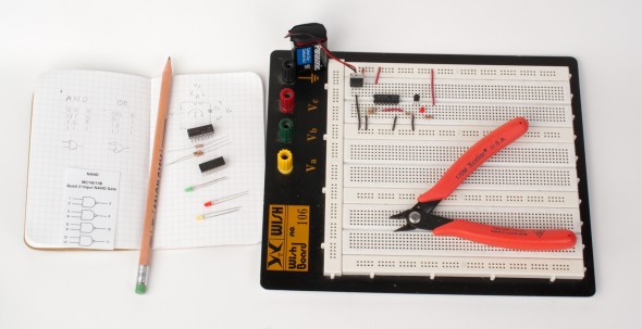 In this workshop we will cover the basics of electricity, starting with Ohm’s Law, work our way up to building simple digital circuits with CMOS chips, transistors and LEDs, and discuss how to interface these circuits with the ‘real world’ of motors, sensors, and other devices.