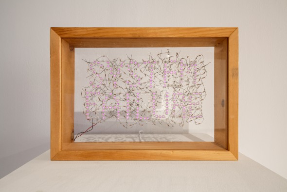 Featuring two separate but interrelated bodies of work, this solo-exhibition is like peering into the brain of the Internet while it doesn't know you're looking.