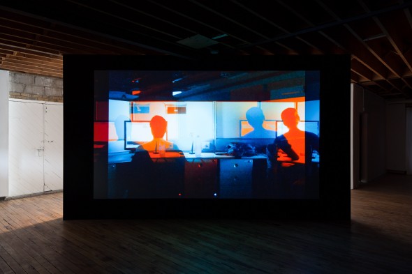 Lucy Raven's new film installation, which is viewed with anaglyph 3D glasses, explores the digital creation of location and space as they relate to contemporary movie-making.