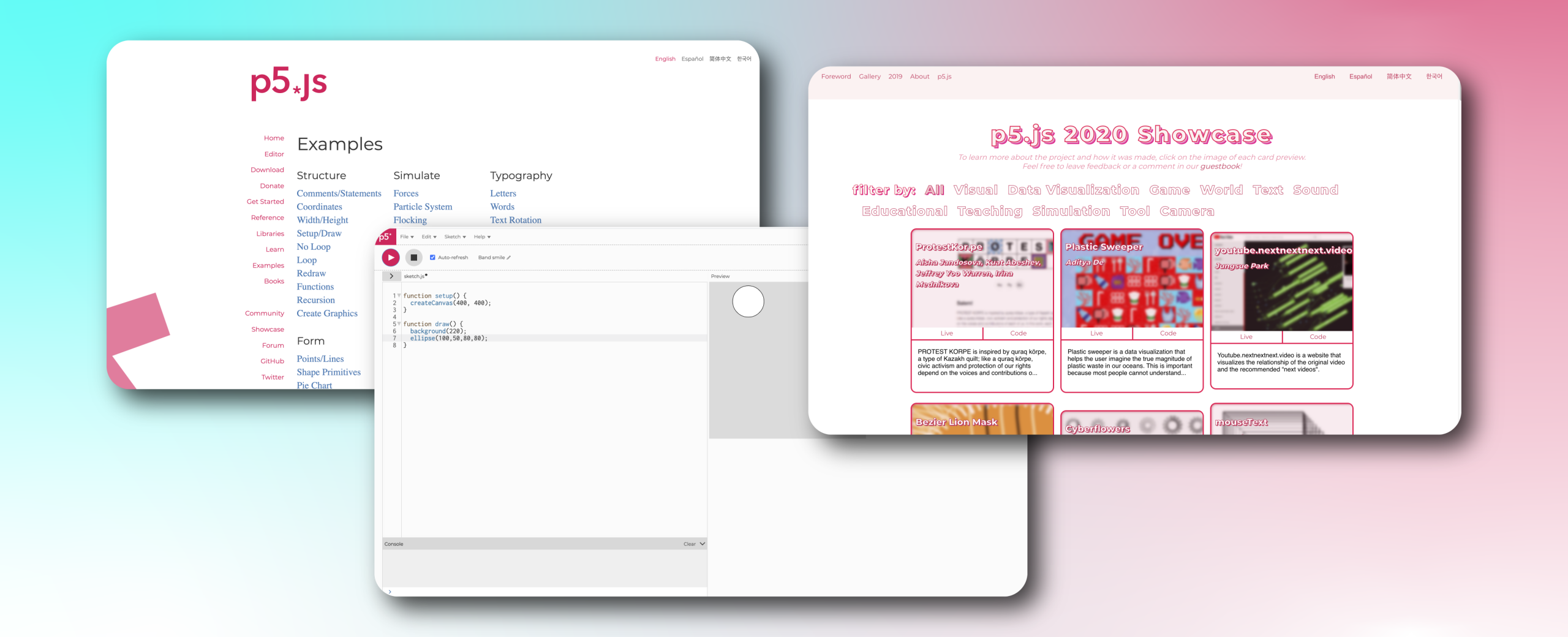 Cover image is compilation of screen captures from the official p5.js website.